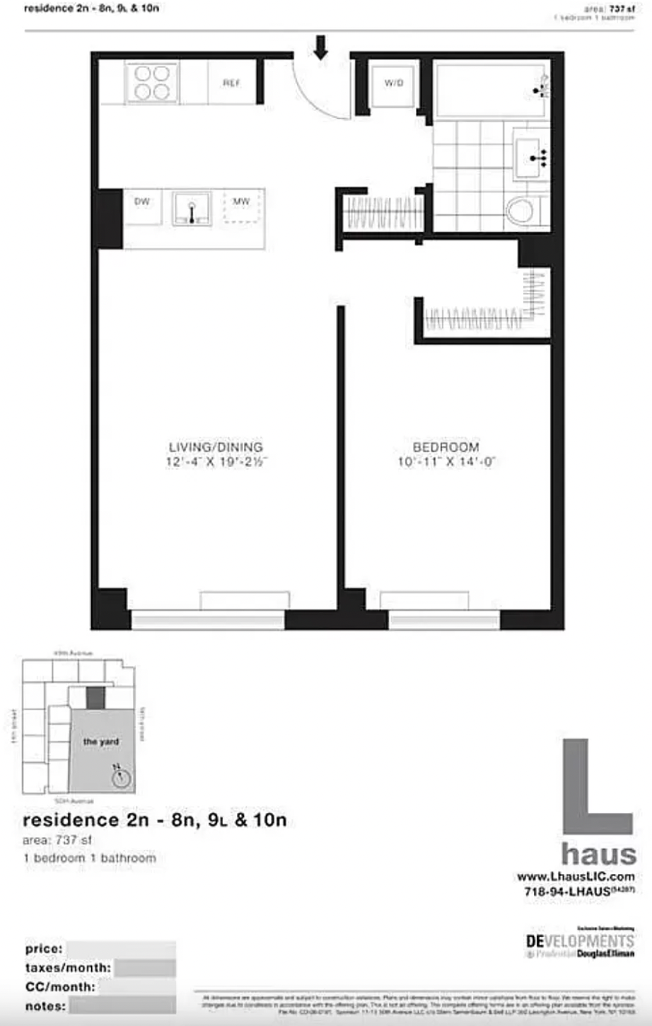 The L haus sits on a quiet city block and offers over 15,000 square feet of state-of-the-art amenities. The extensive indoor amenities include a fitness center, yoga room, community/club room, media room, bike room, and 24 hour full service lobby with cold storage offered to the residents. The distinctive L-shape of the building creates and maximizes the yard - over 10,000 square feet of landscaped green space and includes tables, lounges, grills, rolling lawn, water features, and childrens play structure. Lastly the building offers a roof terrace with breathtaking views of the Manhattan skyline and Long Island City.