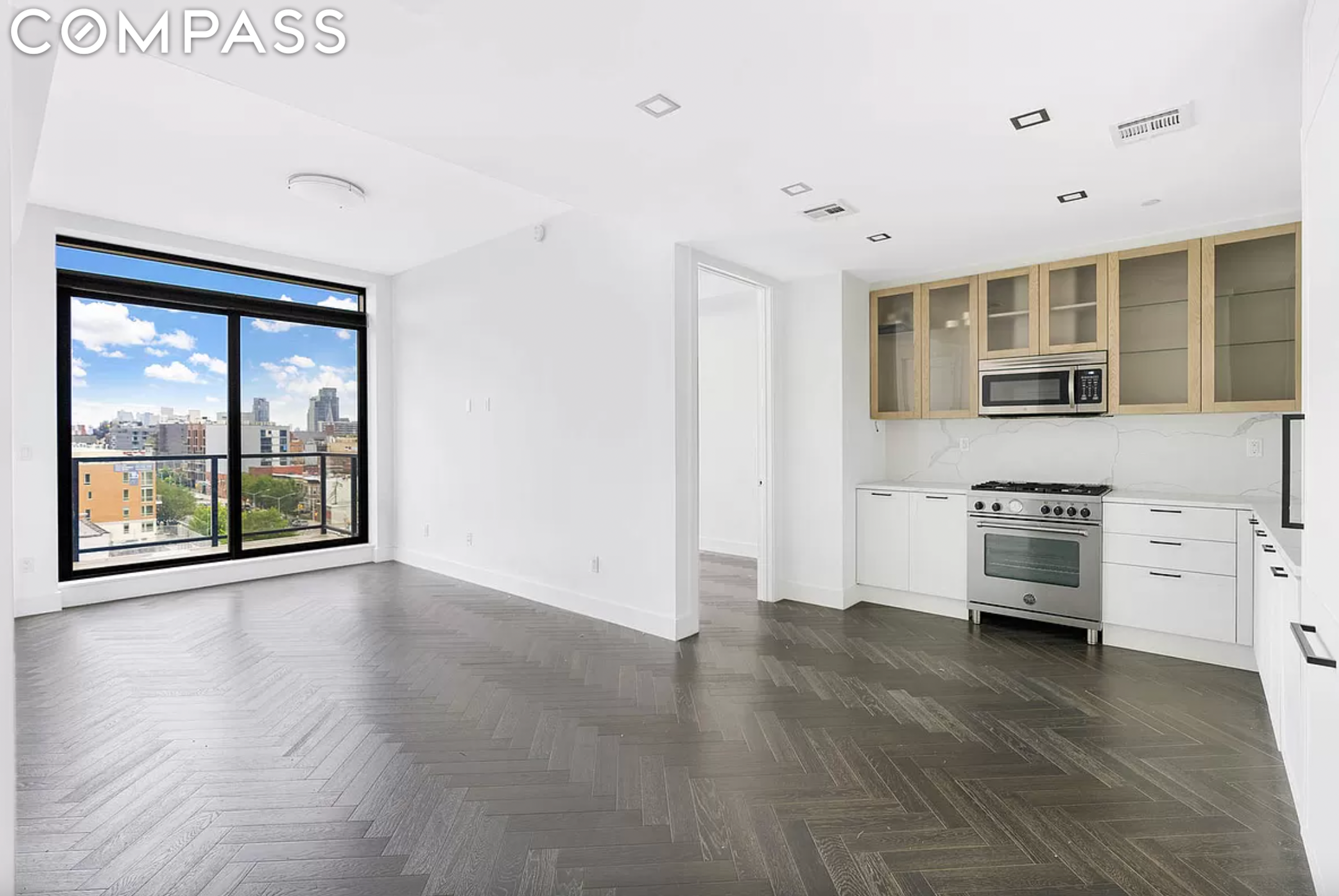 Welcome to 6E, this beautiful and efficient south-facing two-bedroom, one full bath residence in the heart of Long Island City, now available for rent. It is a stunning example of meticulous design and voluminous open living-dining space, with an oversized 88 sq ft balcony overlooking incredible LIC and Manhattan skyline views. Some key qualities include the high 10 ft ceilings, massive double-pane windows that stretch nearly floor to ceiling, classic herringbone-patterned oak floors, a wealth of closets and a smart home energy-saving HVAC system controlled by Nest system.