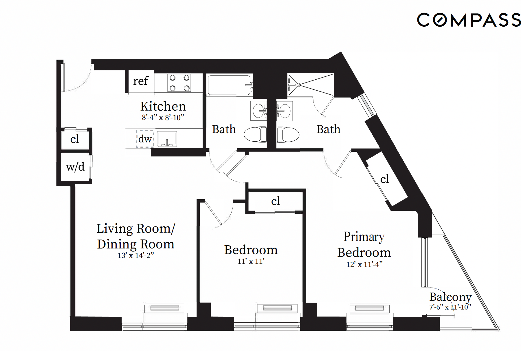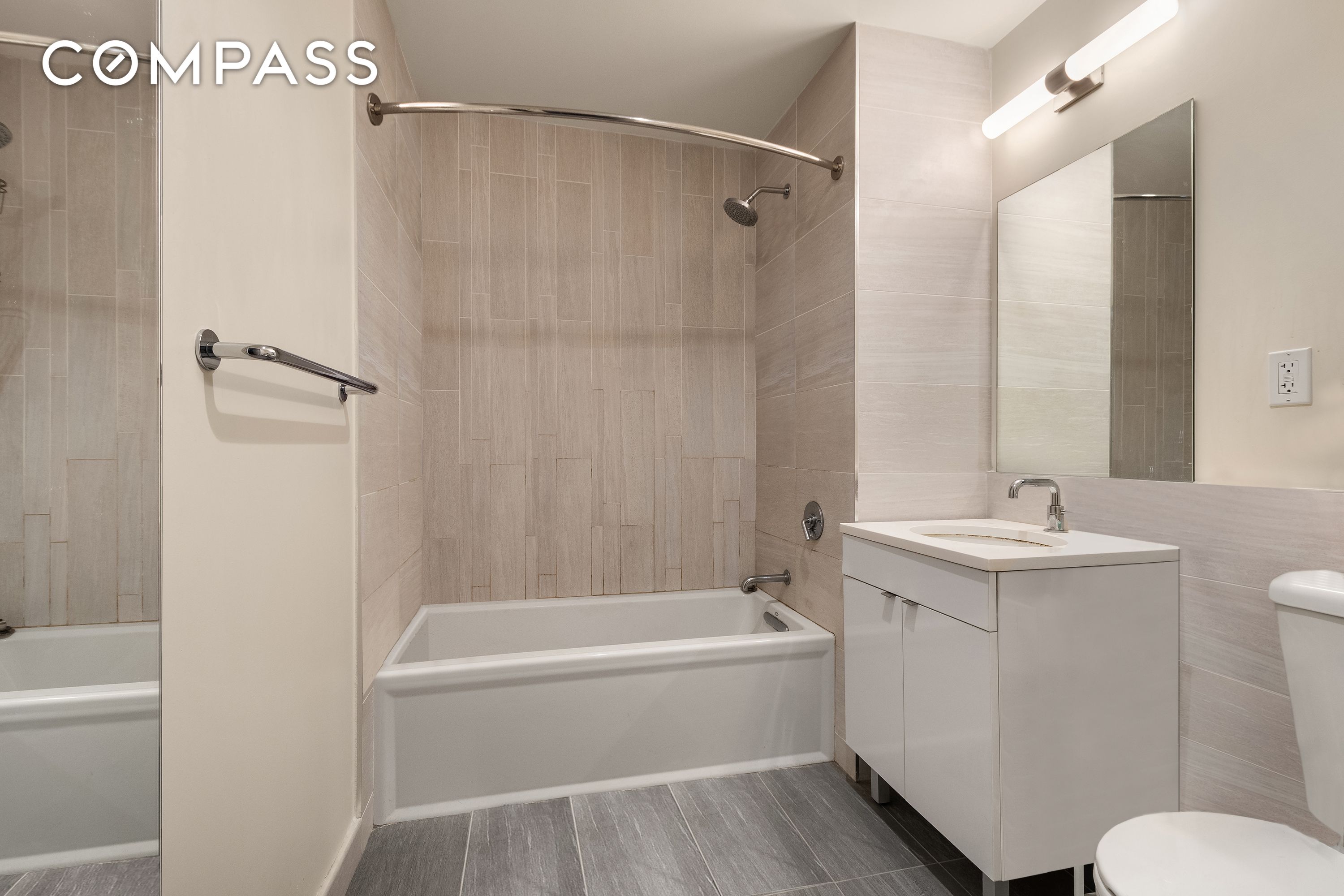 Unit 508 boasts tons of natural light with oversized double pane windows and ceiling heights reaching nearly 10' high. A bright and airy ambiance welcomes you into this spacious 1,046-square-foot home featuring gorgeous wide-plank oak floors and soaring 10-foot-tall ceilings. Relax and entertain in the open plan living and dining area. The thoughtfully designed modern kitchen is finished with quartz stone counters and island, a tiled snow & ice backsplash equipped with a full suite of stainless-steel appliances including a gas range, dishwasher, and built-in microwave. The bathrooms are complete with high style stone gray tiled floors and polished white stone walls featuring chrome Waterworks fixtures and a custom vanity. Complete with a convenience of washer/dryer in the unit. Residents can also enjoy the stunning private balcony with open LIC views.