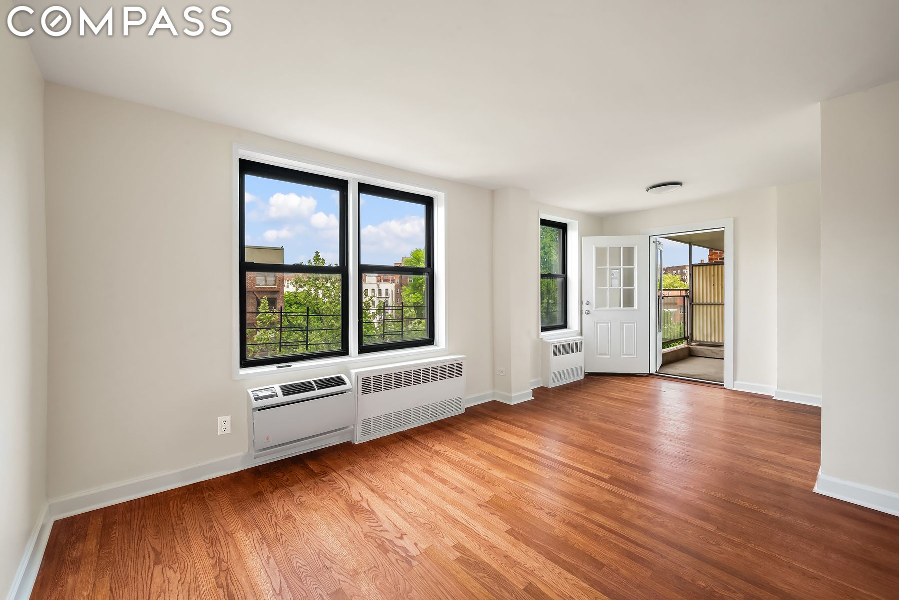 Welcome home to Unit 603 in the most sought-after Condominium in the Jackson Heights Historic District! Flooded with natural light this oversized 1 bedroom home is 873 Sq Ft. This beautiful huge apartment flows into a large living room and multi use room with an oversized balcony. The widowed renovated kitchen sits just off the separate dining room and is equipped with a dishwasher. The primary bedroom suite accommodates a King size bedroom set, 2 windows and a large closet. The renovated bathroom includes a stand-up shower. The entire residences features air conditioners in every room, high ceiling, and hardwood flooring.